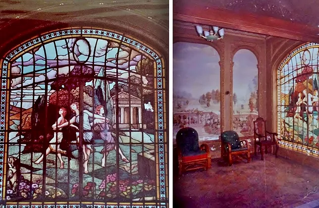 O mais magnífico dos vitrais do Palacete Camasmie é descrito por Marcia, em seu trabalho: “como um vitral colorindo de alto a baixo, dando um aspecto deslumbrante ao aposento. Toda área social era raramente usada, somente nas ocasiões de festas”.