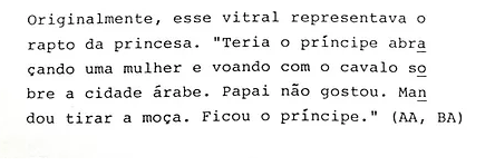 Vejam que na parte superior da obra é mostrado um príncipe, montado em seu cavalo. Pois bem, Marcia conta essa lenda em seu trabalho: