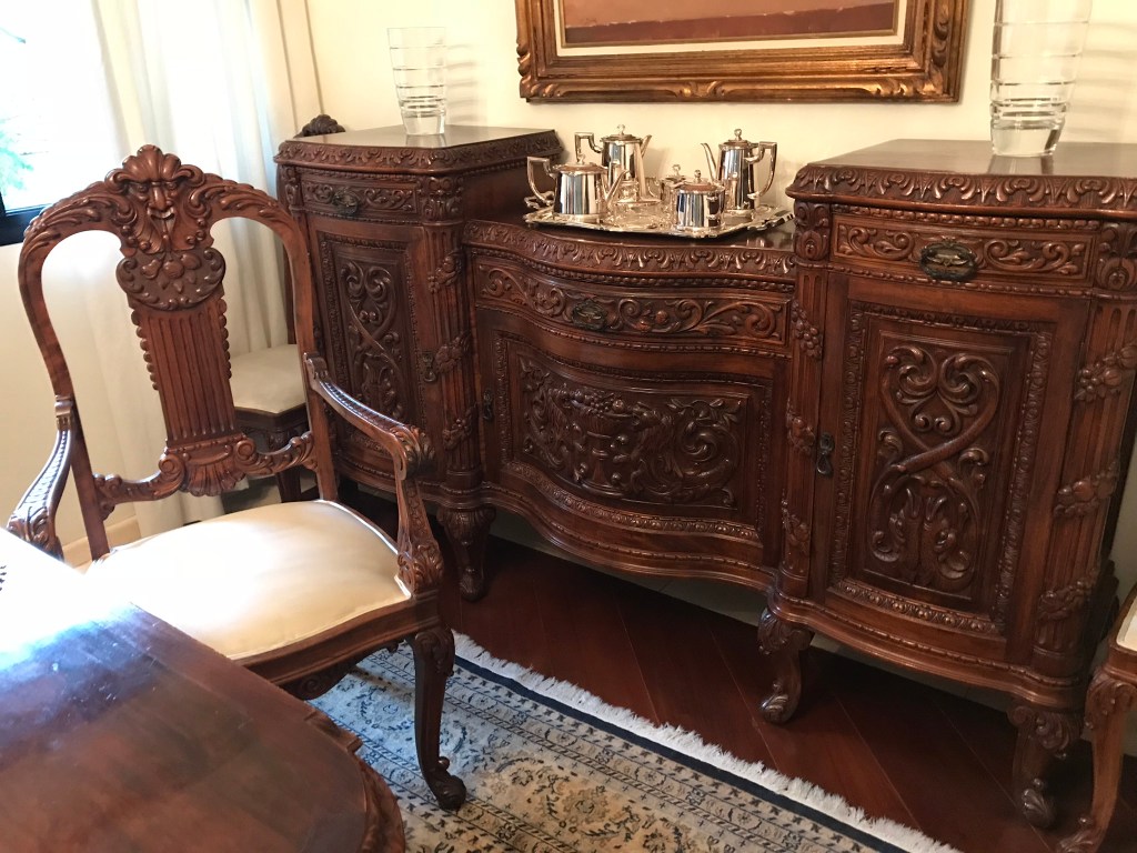 Da mansão ainda restam as lindas memórias, fotografias e alguns móveis e utensílios espalhados nas residências de alguns descendentes, como esse conjunto de sala de jantar, ricamente decorado, que se encontra em minha casa.