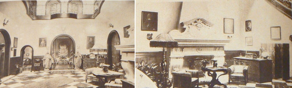 Nos vários cômodos podemos encontrar enormes lareiras, com entalhes dos brasões de armas de ambas as famílias, muitos chifres de cervos espalhados pelas paredes como decoração, como pode-se notar na foto à esquerda.