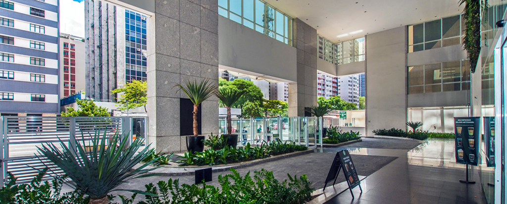 São mais de 15 mil m² de área total e passam pelo prédio 1.300 pessoas por dia. Erguido com placas moduladas sustentadas por perfis metálicos, que dão o aspecto de espelhamento para quem observa de longe. No andar térreo, encontra-se uma loja do Starbucks Café.