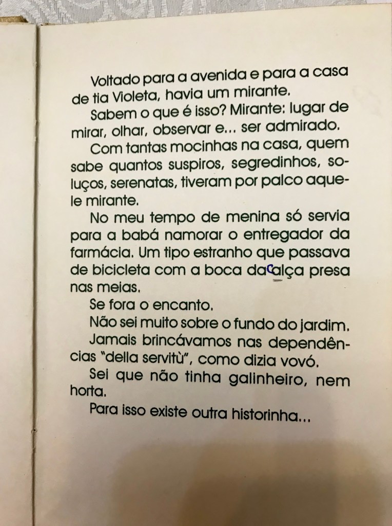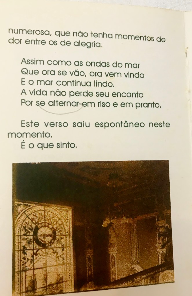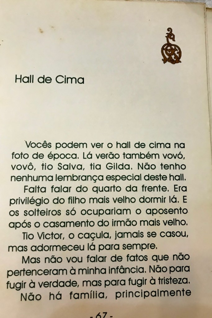 Fiquei tão impressionada que fotografei todas as páginas do livro, com a intenção de escrever um texto sobre a casa. Alguns anos se passaram e eu, sempre que tentava escrever, achava que o texto não ficava tão bom. Agora que entendi: nada substitui a singeleza do livro. Então, o mais perto dele eram as fotos que tirei das páginas com o celular. Resolvi compartilhar o livro através delas e intercalei fotos das imagens originais que também tive oportunidade de ver.