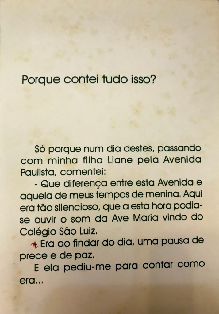 Muitos, muitos agredecimentos à D. Lela, que gentilmente, trouxe o livro para eu conhecer e concondou com sua publicação. Um deleite para quem gosta da história da Avenida Paulista. Vamos conhecer???
