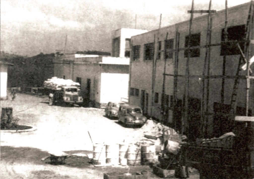 Na foto vemos, do lado direito, a construção do novo escritório da empresa e ao fundo a casa de força. A fábrica ficava do lado esquerdo do escritório. Do lado da casa de força pode-se observar um Mercedes 59 e na frente da construção dois DKVs, carros da época.