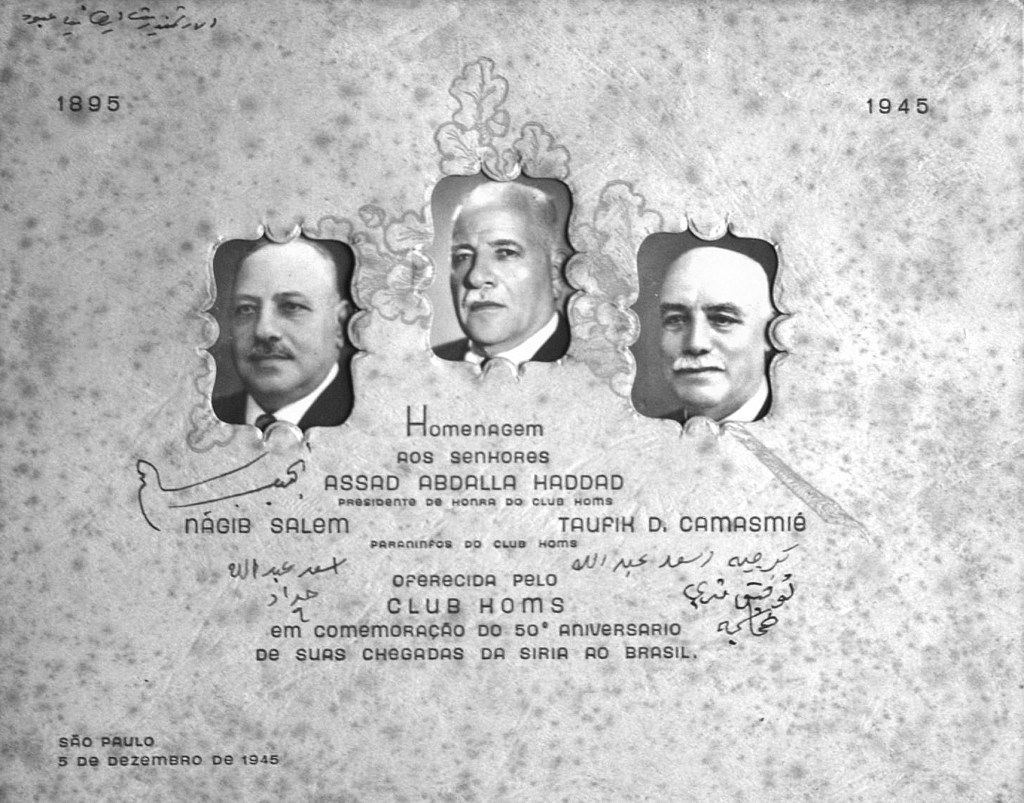 É bem provável que esse fato também influenciou a ida do Club Homs para a Avenida Paulista. Em 1945, quando foi inaugurada a nova sede, o clube prestou uma homenagem comemorativa dos 50 anos da chegada ao Brasil de três sírios de Homs, muito conhecidos da comunidade, os Srs. Assad Abdalla, presidente de honra, Taufik Camasmie e Nagib Salem, paraninfos do clube. Todos eles residiram na Avenida Paulista, em belos casarões de arquitetura eclética, com detalhes inspirados no estilo mourisco.